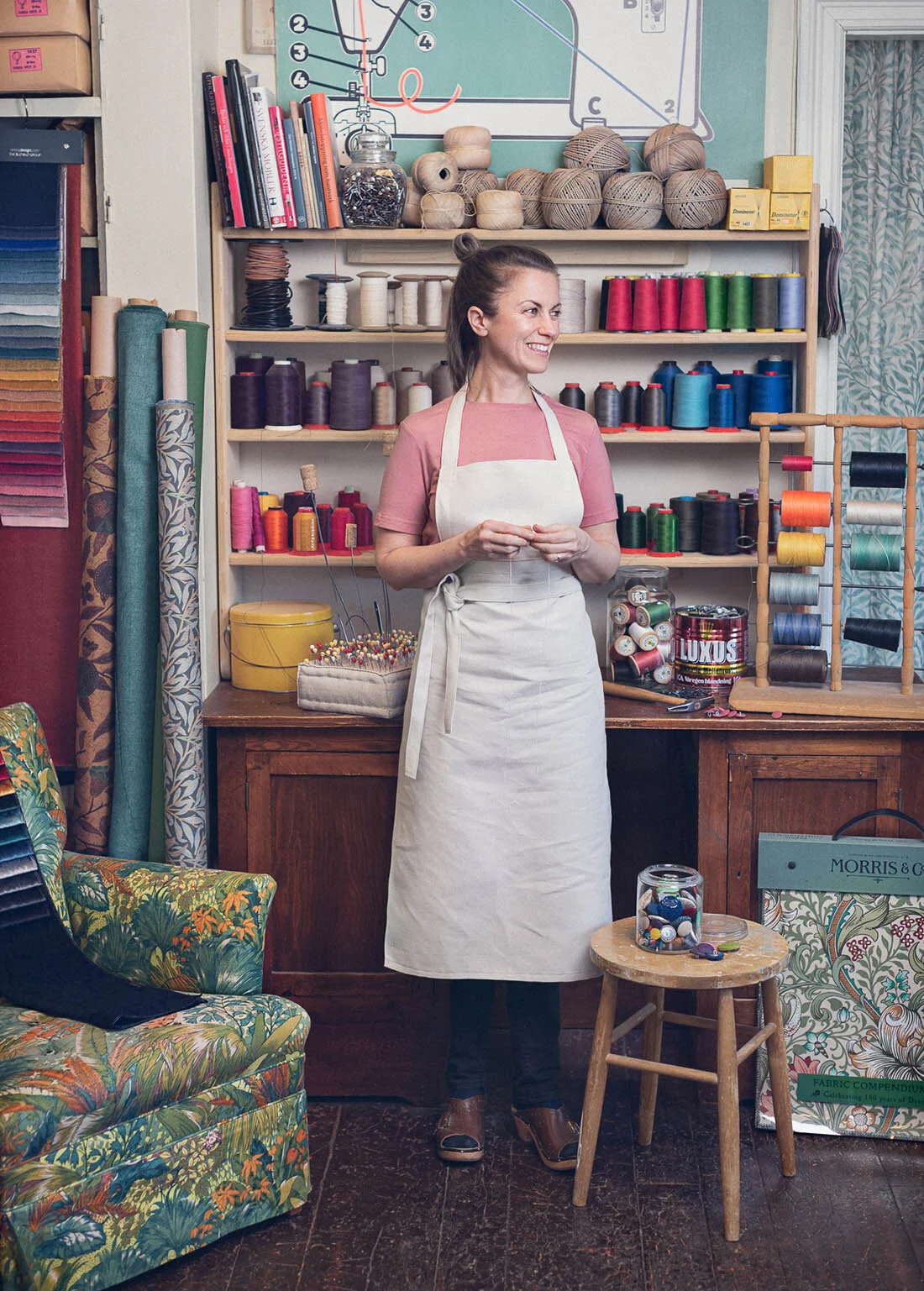 Jag heter Daniela, och det är jag som driver Tapetserarverkstad Höga Kusten. I en gammal folkskola i Nordingrå har jag min verkstad, där jag både renoverar möbler och säljer möbeltyger och annat material.
